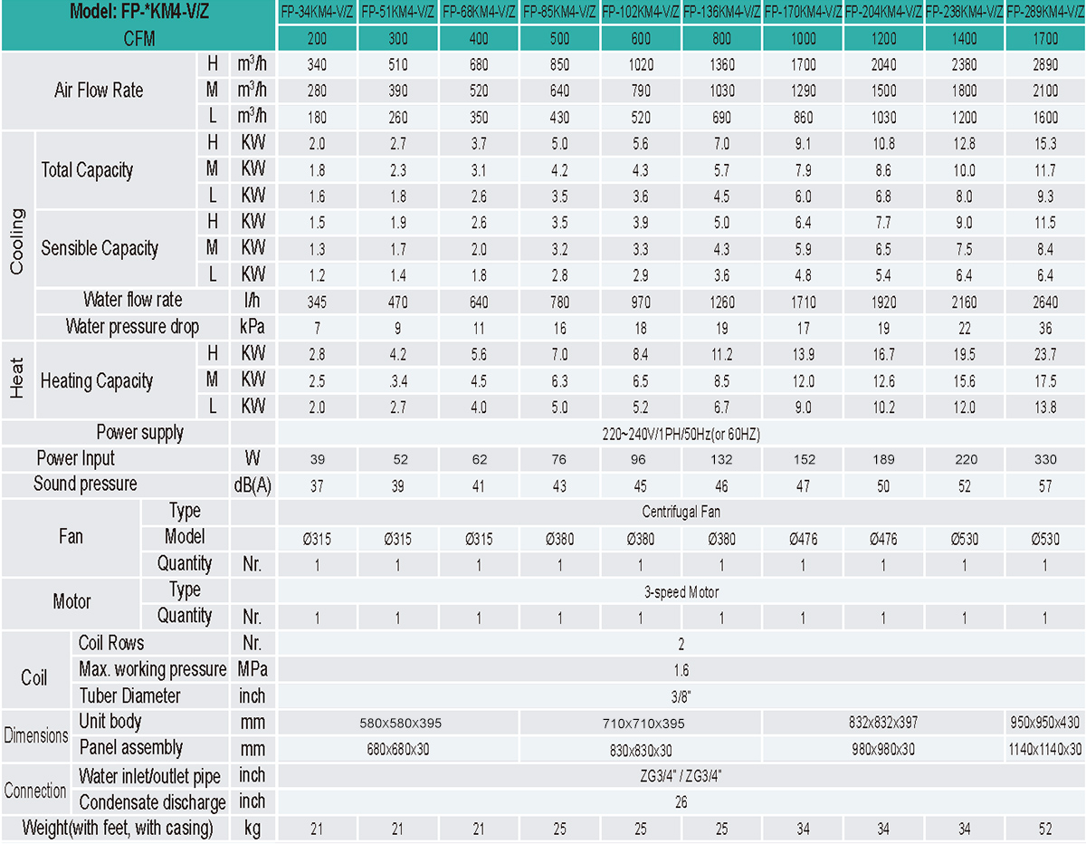 Coil are made of copper tubes and high exchange surface area aluminum blue fins. All coils are 100% tested against leaks by 16bar,1.6Mpa air pressure. with 3/4”pipe connections and air bleed vent.